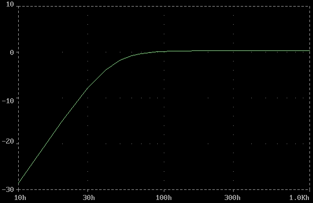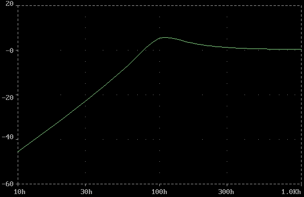 so ergibt sich in einem etwa 100 Liter großen Gehäuse folgender Frequenzgang: